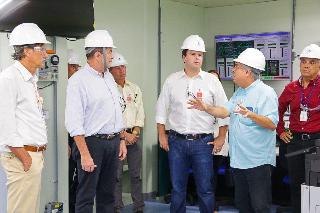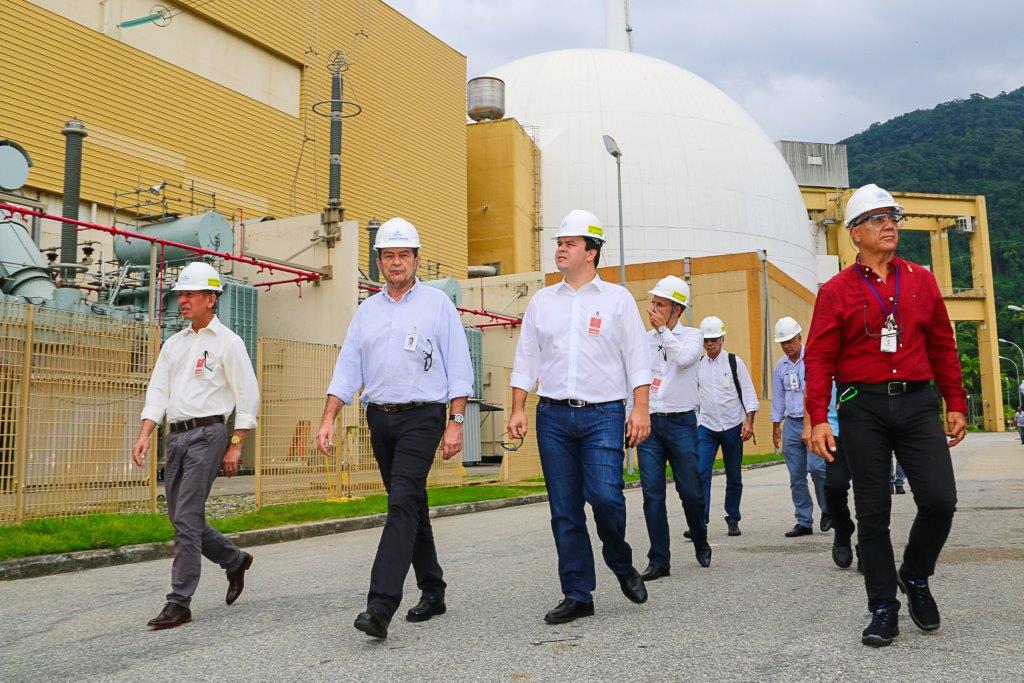 O presidente da Eletronuclear, Leonam Guimarães (ao centro, à esq.), acompanhou o ministro Coelho Filho (ao centro, à dir.) durante a visita