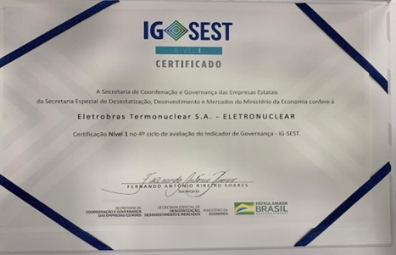 Certificação Nível 1 no 4º ciclo de avaliação do indicador de Governança – IG-Sest