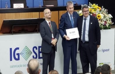 O Coordenador de Governança Empresarial – Norman Hime recebendo a Certificação Nível 1 no 4º ciclo de avaliação do indicador de Governança – IG-Sest